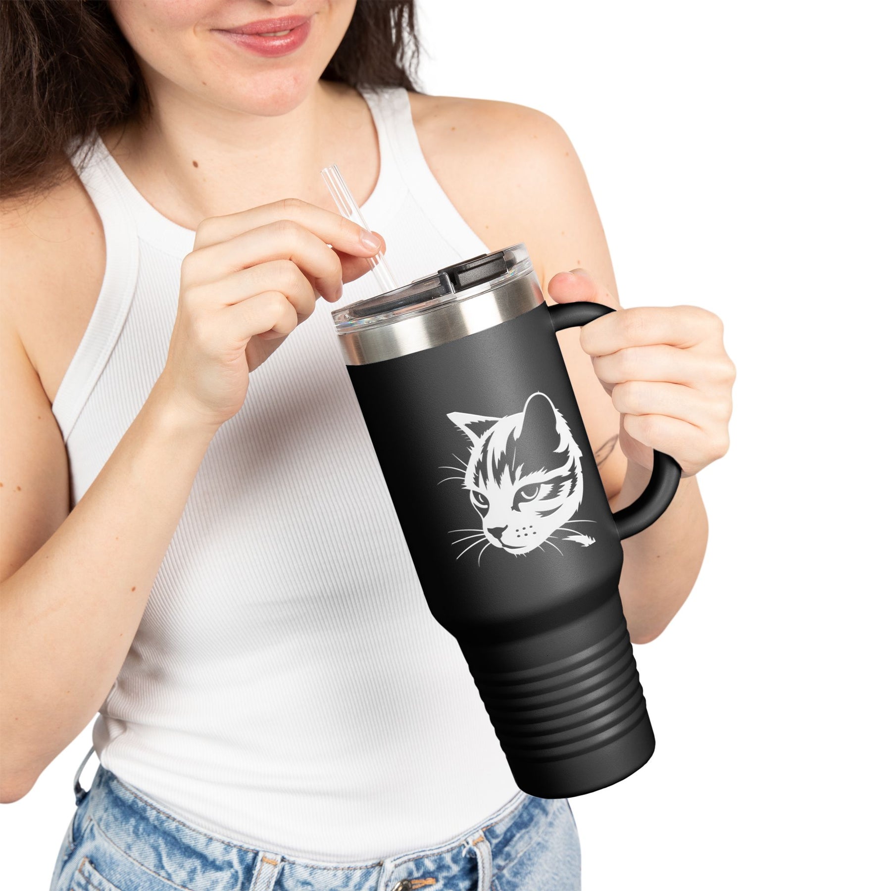 Cat Lover's Insulated Travel Mug, 40oz - Perfect for Coffee, Tea, Gifts for Pet Owners, Cat-Themed Drinkware, Valentine's Day, Birthday