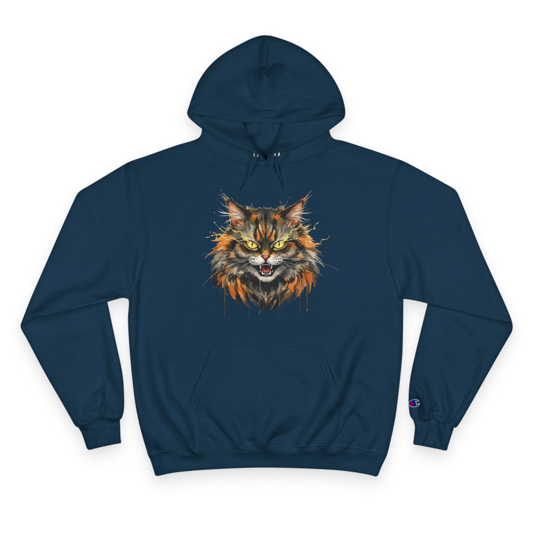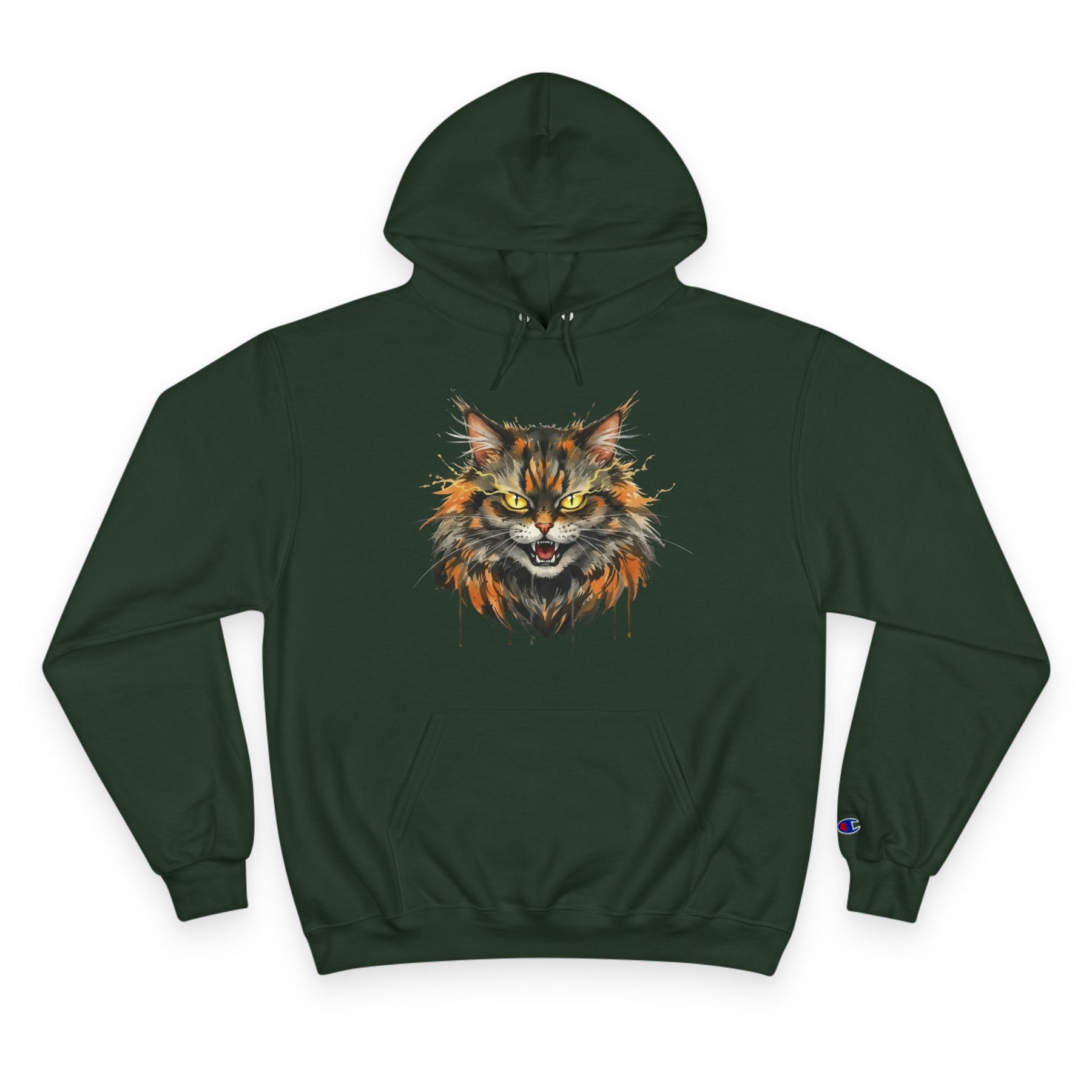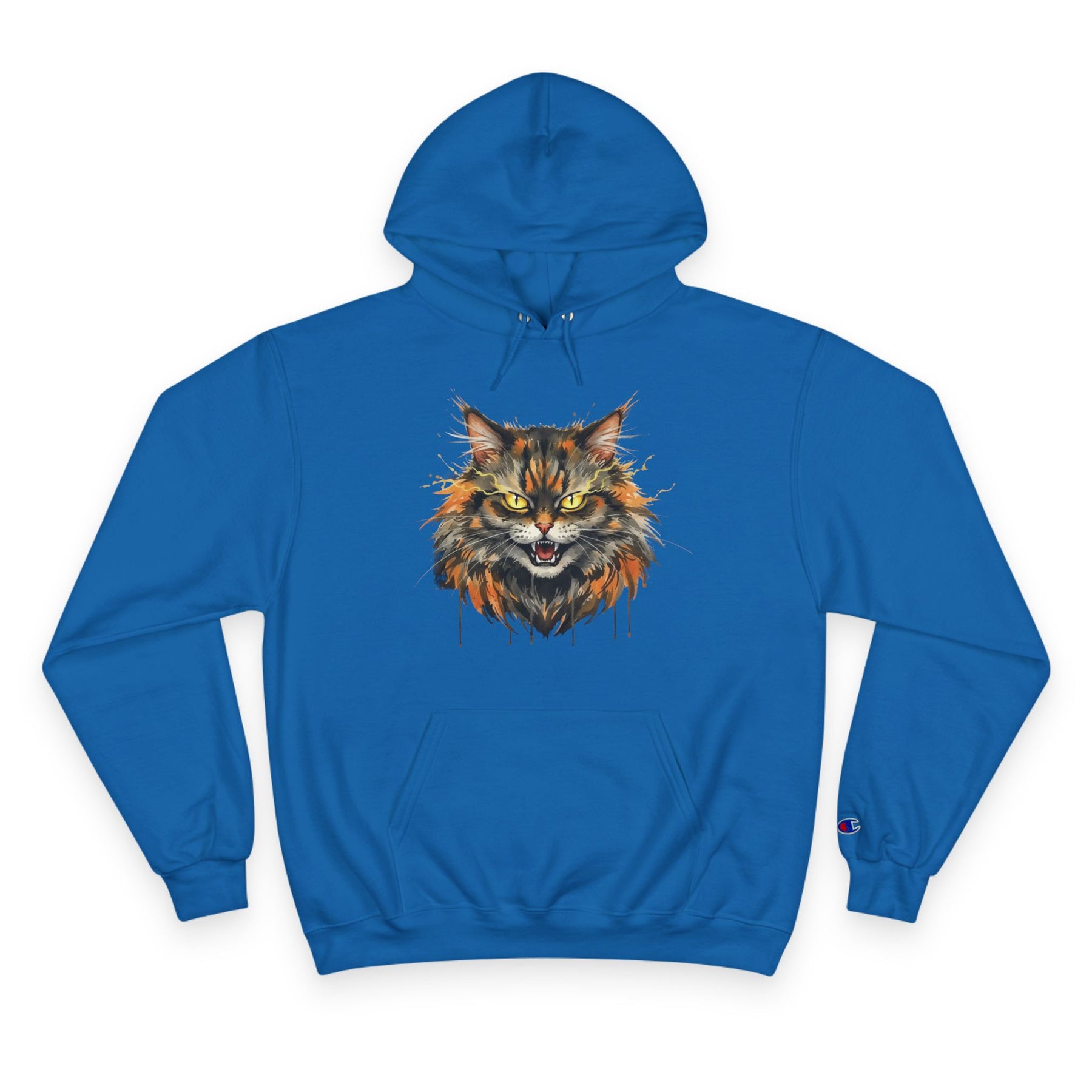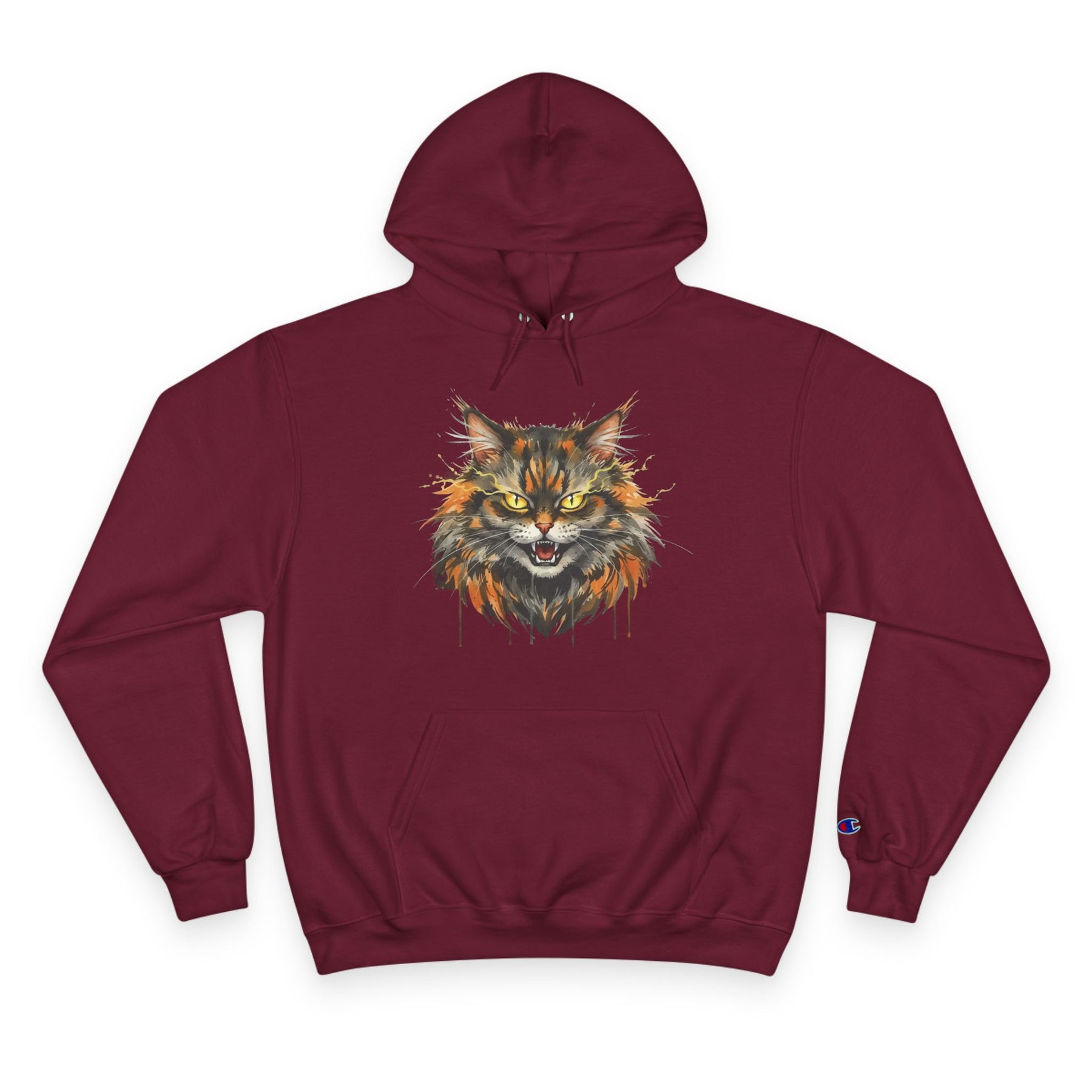 This midweight Champion hoodie brings a fierce, artistic energy to everyday comfort. A richly detailed, watercolor-style wildcat face sits centered on the chest — its layered brushstrokes and subtle drips feel alive, raw, and slightly untamed. The laid-back regular fit, roomy kangaroo pocket, and adjustable two-ply hood make it worn-in cozy from the first wear. Durable 50/50 cotton-poly fabric holds vibrant prints while resisting shrinking and stretching; the soft interior and medium-heavy weight keep you warm without feeling bulky. Small details like the embroidered “C” on the sleeve and a sewn-in care label add authenticity. Wear it when you want to carry a little wildness into the city, the studio, or slow mornings at home.