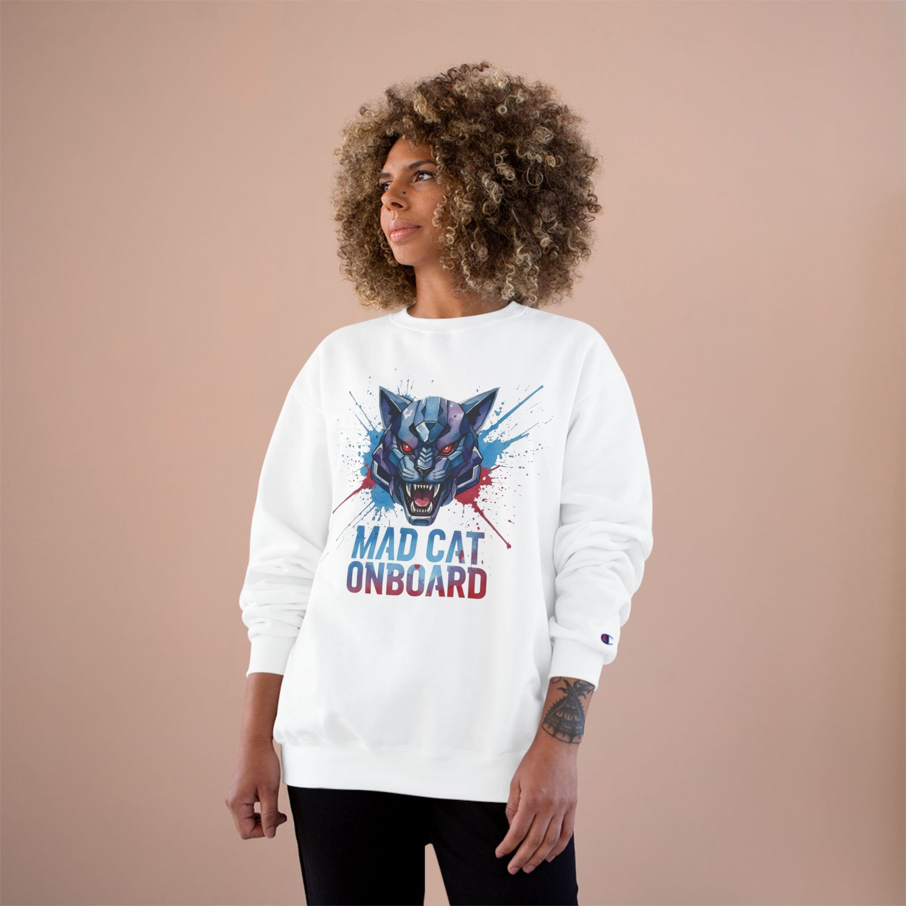 Mad Cat Onboard Graphic style 3 Champion Crewneck Sweatshirt for Gamers & Sci‑Fi Fans