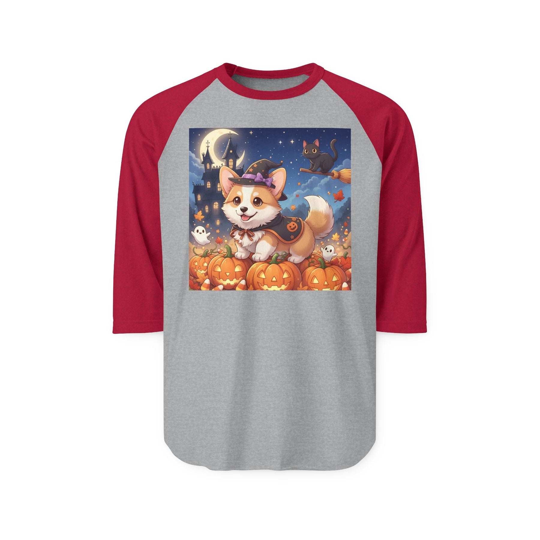Embrace the playful spirit of Halloween with this charming Unisex Three-Quarter Sleeve Raglan Shirt. Designed for comfort and style, this shirt features a delightful image of a puppy dressed in a witch's outfit surrounded by festive pumpkins. Its cozy fit makes it perfect for casual outings, family gatherings, or cozy nights in. Ideal for dog lovers and Halloween enthusiasts, this shirt adds a fun touch to any wardrobe. Whether you're attending a Halloween party, participating in a spooky event, or simply enjoying the fall season, this shirt is sure to spark smiles. Get ready to celebrate and create lasting memories!