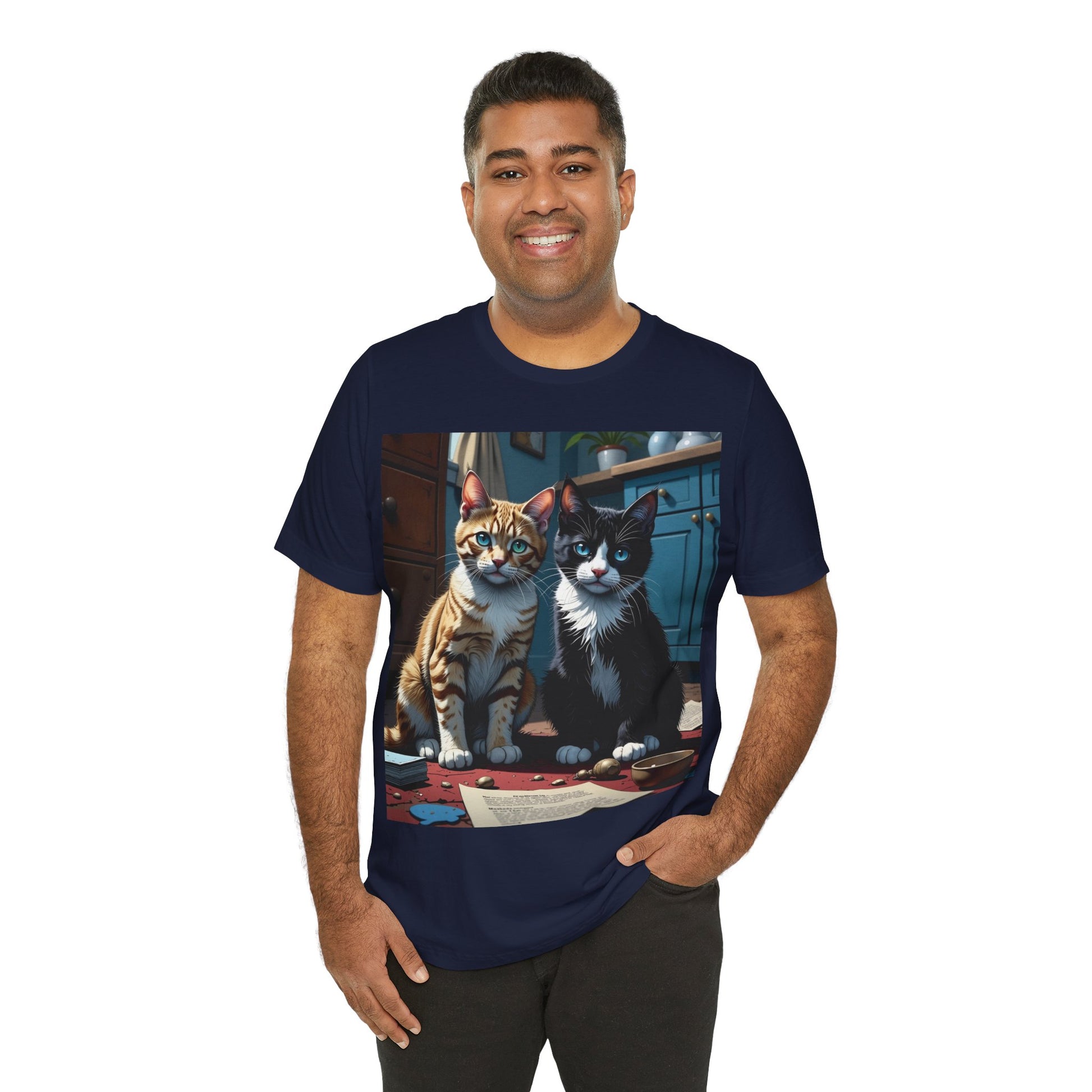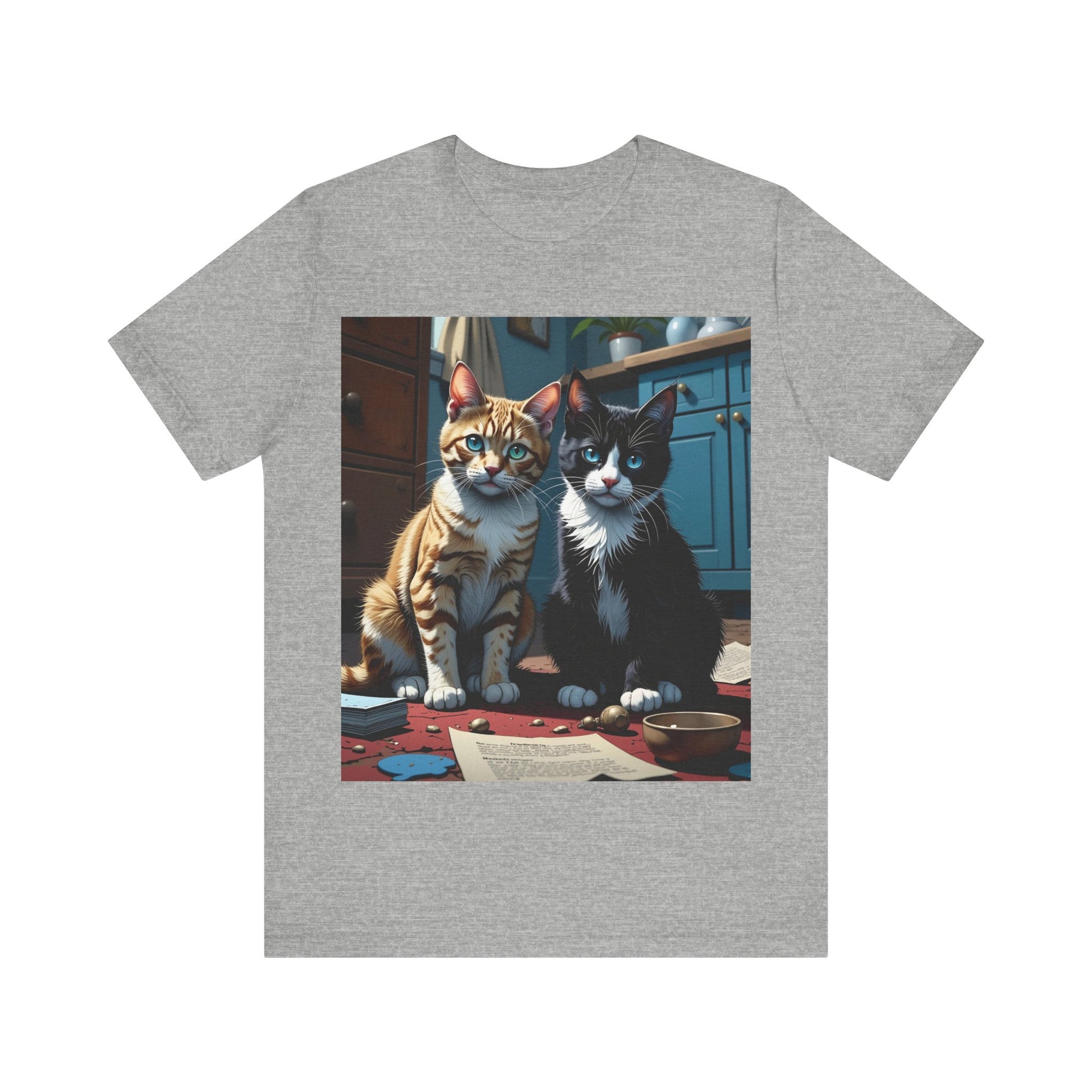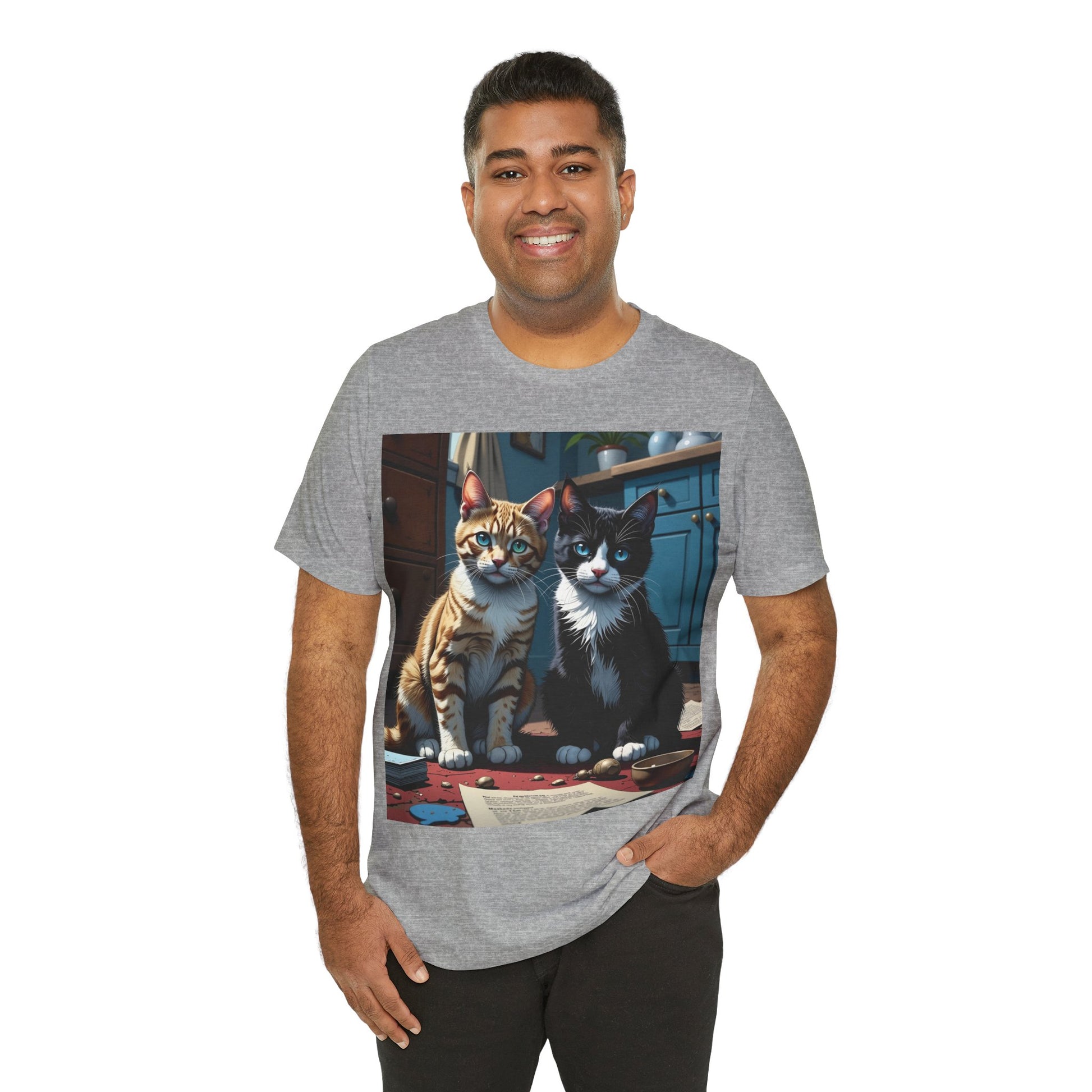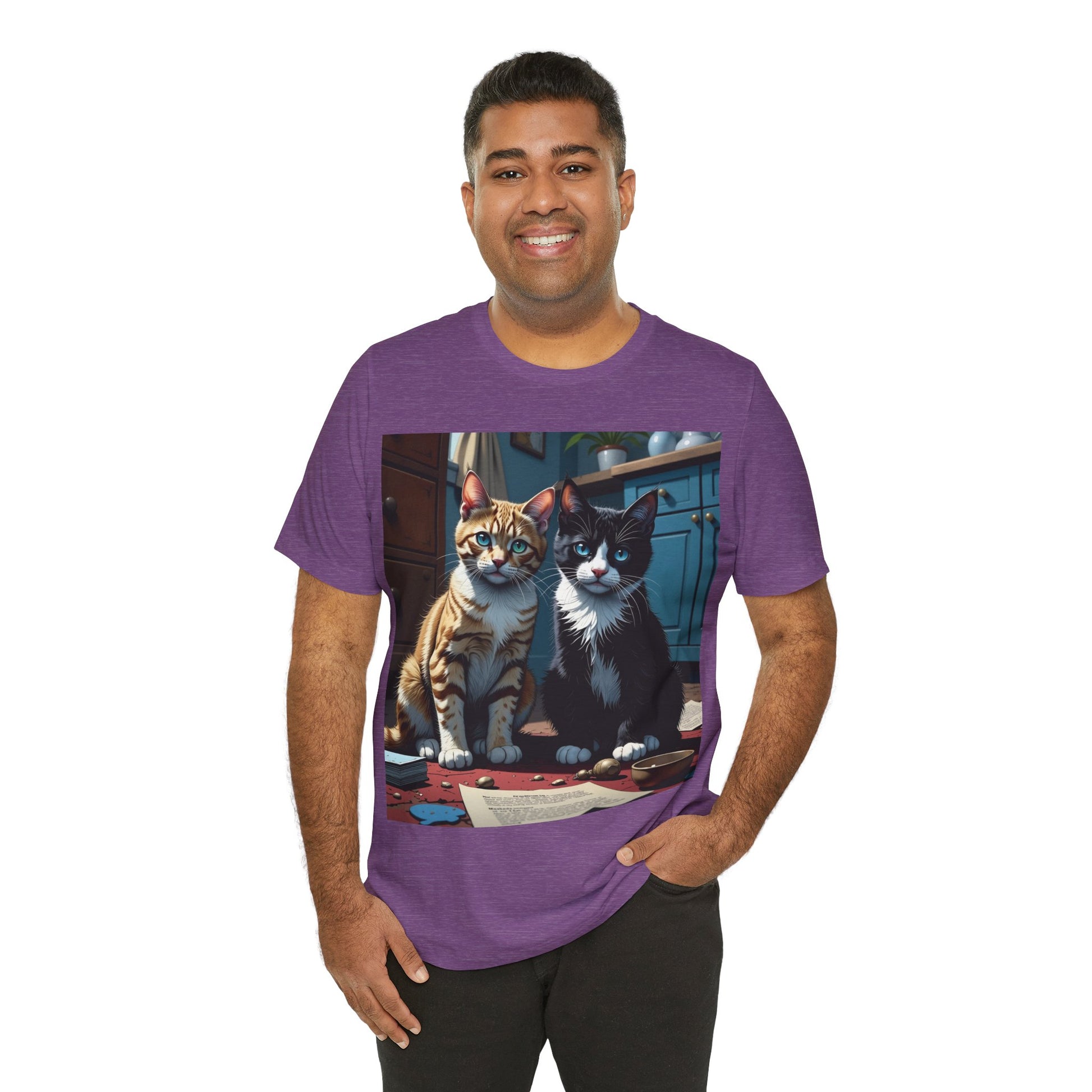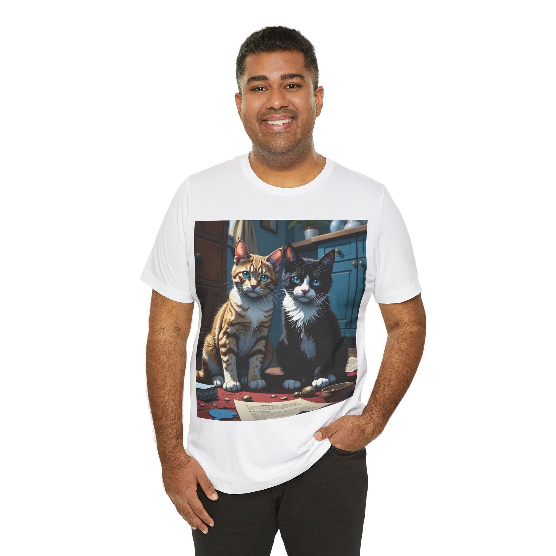 Bring a touch of charm to your wardrobe with this unisex jersey short sleeve tee featuring an adorable design of two playful cats. This shirt perfectly blends comfort with style, making it an essential addition for cat lovers and casual wear enthusiasts alike. Whether you're lounging at home, heading to a gathering with friends, or running errands, this tee is versatile for any occasion. It's perfect for everyday wear and makes a thoughtful gift for birthdays, holidays, or just because! Celebrate your love for furry friends during National Cat Day or simply enjoy it as part of your everyday attire. Embrace the fun and quirky vibe this shirt brings, and let it spark joy in your life!