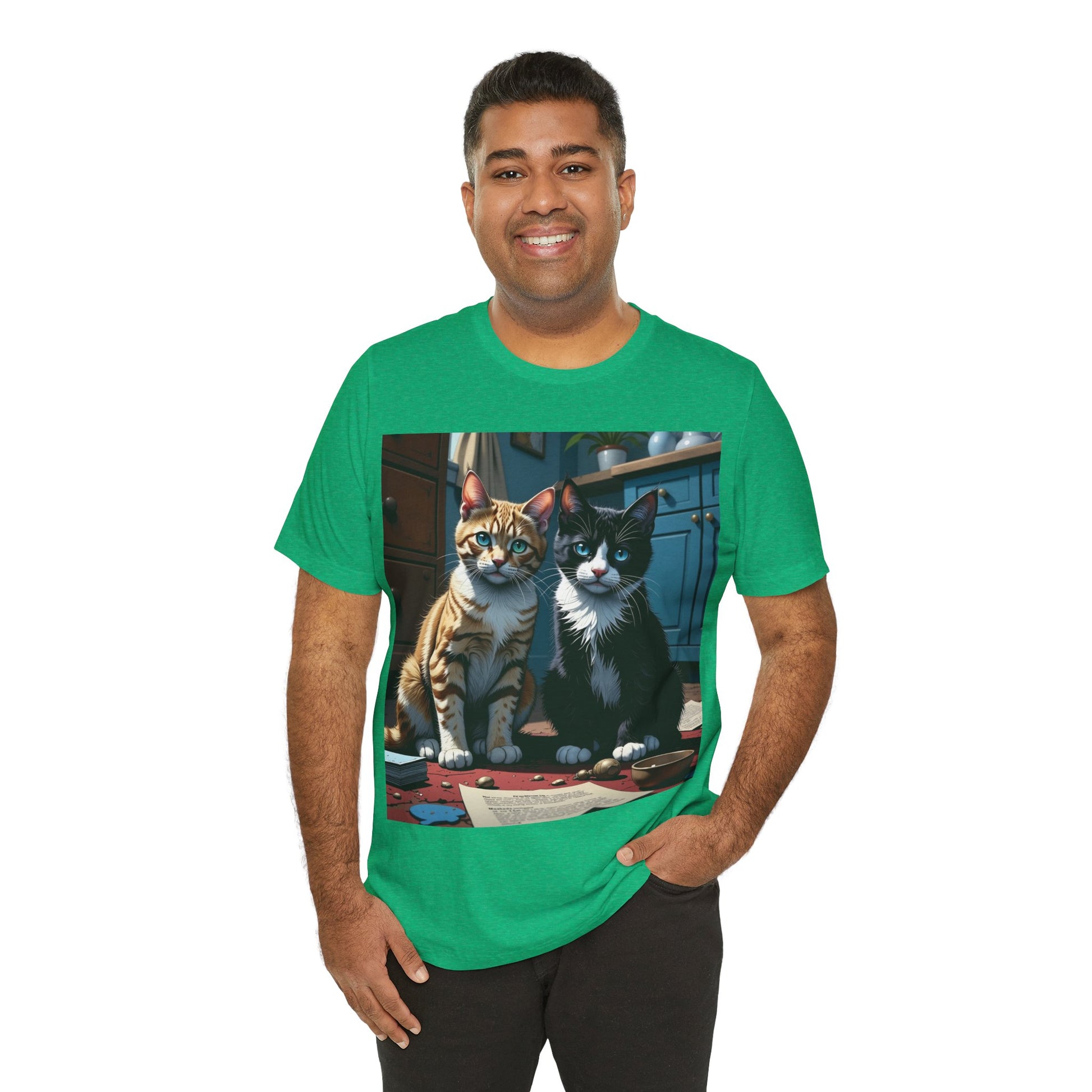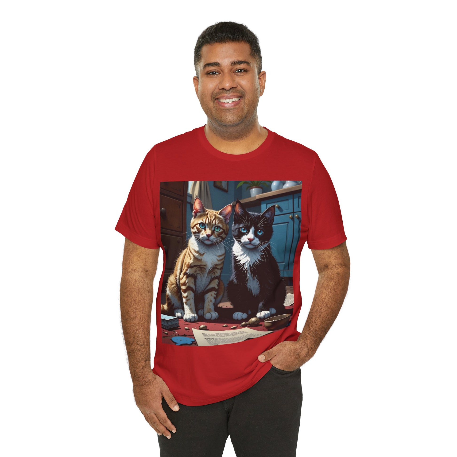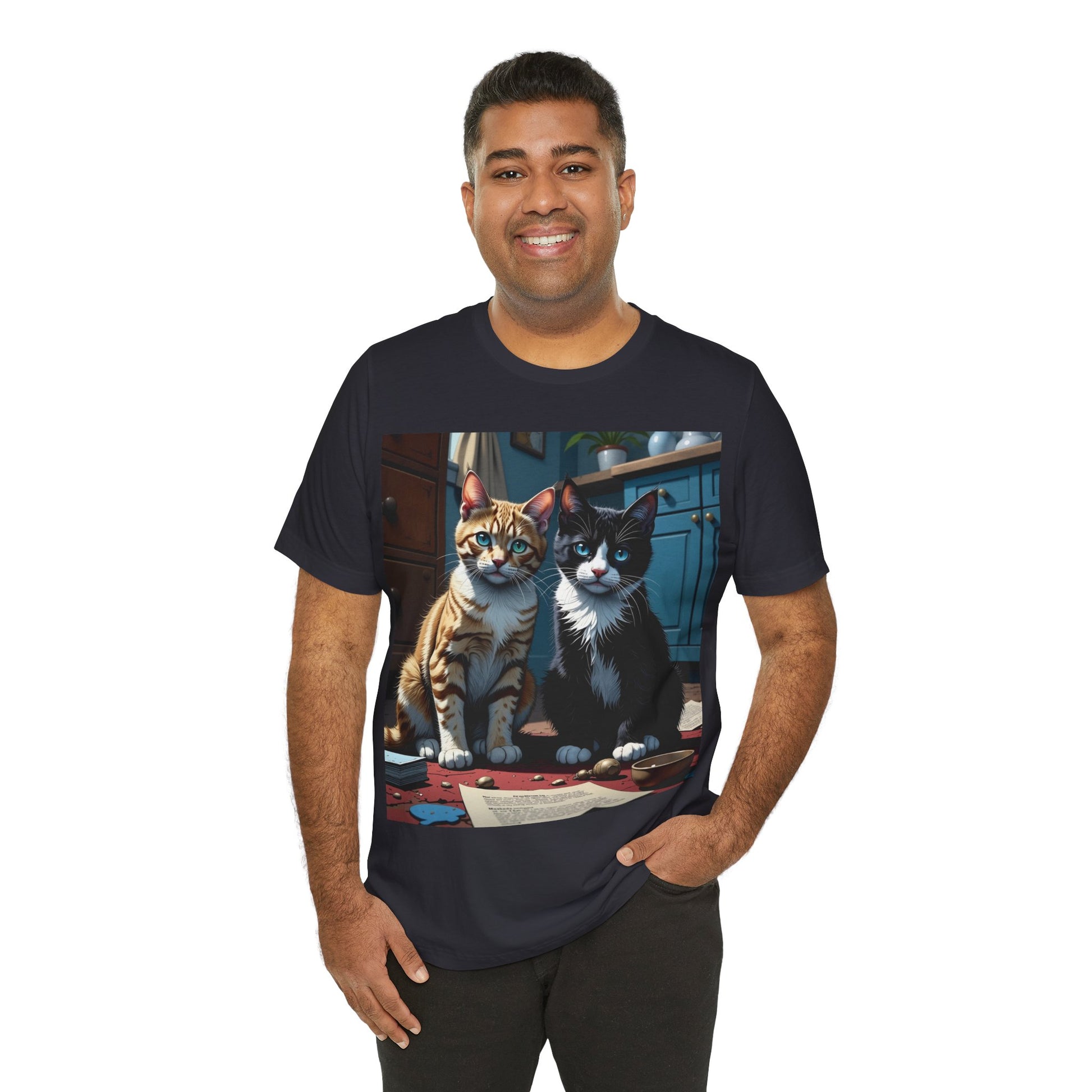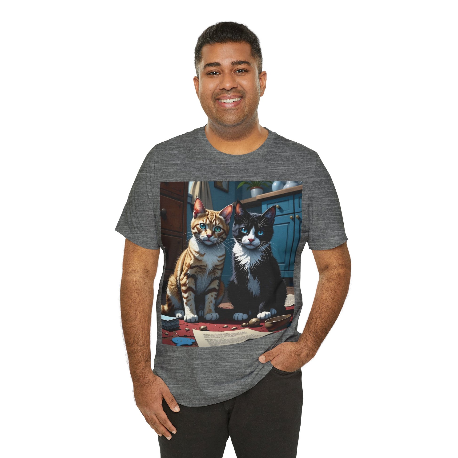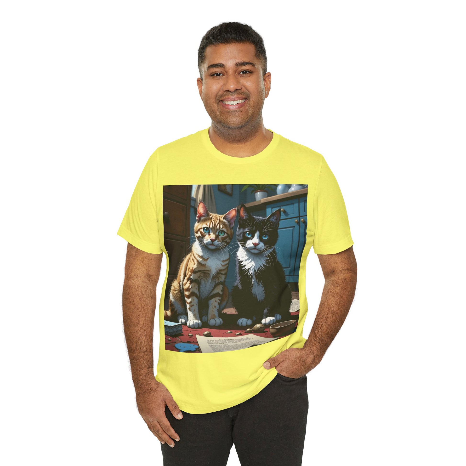 Bring a touch of charm to your wardrobe with this unisex jersey short sleeve tee featuring an adorable design of two playful cats. This shirt perfectly blends comfort with style, making it an essential addition for cat lovers and casual wear enthusiasts alike. Whether you're lounging at home, heading to a gathering with friends, or running errands, this tee is versatile for any occasion. It's perfect for everyday wear and makes a thoughtful gift for birthdays, holidays, or just because! Celebrate your love for furry friends during National Cat Day or simply enjoy it as part of your everyday attire. Embrace the fun and quirky vibe this shirt brings, and let it spark joy in your life!