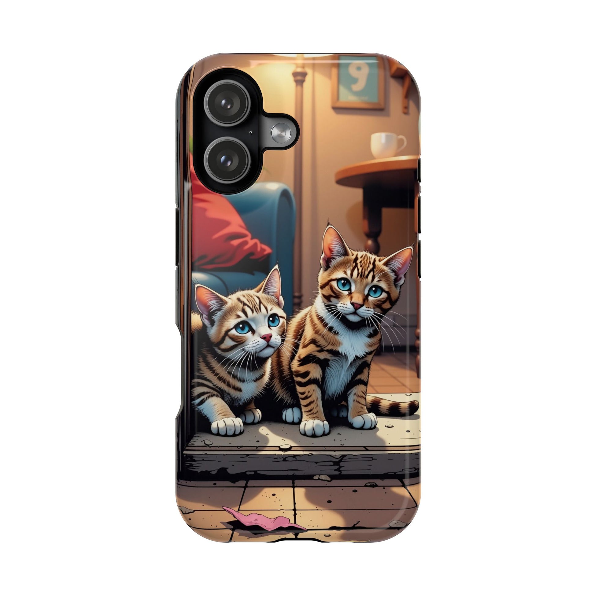 Cute Cats Magnetic Phone Case comic style 1, Cat Lover Gift, Impact-Resistant iPhone Case, Funny Pet Accessory, Unique Animal Design