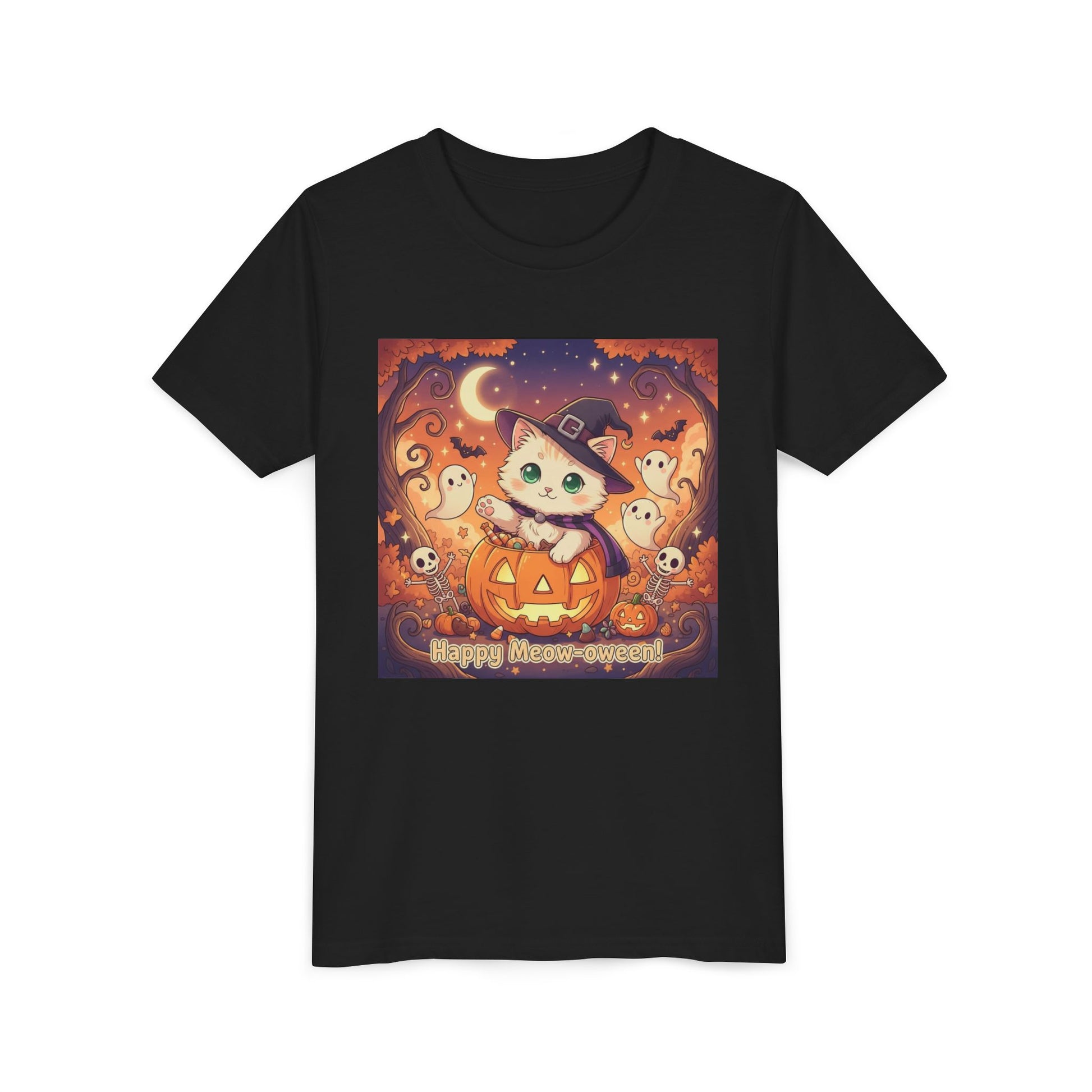 Halloween cute kitten anime style 6 Unisex Youth Tee | T-Shirt, Cute Pumpkin Shirt, Kids Halloween Outfit, Cat Lover Gift, Fun Fall Apparel
