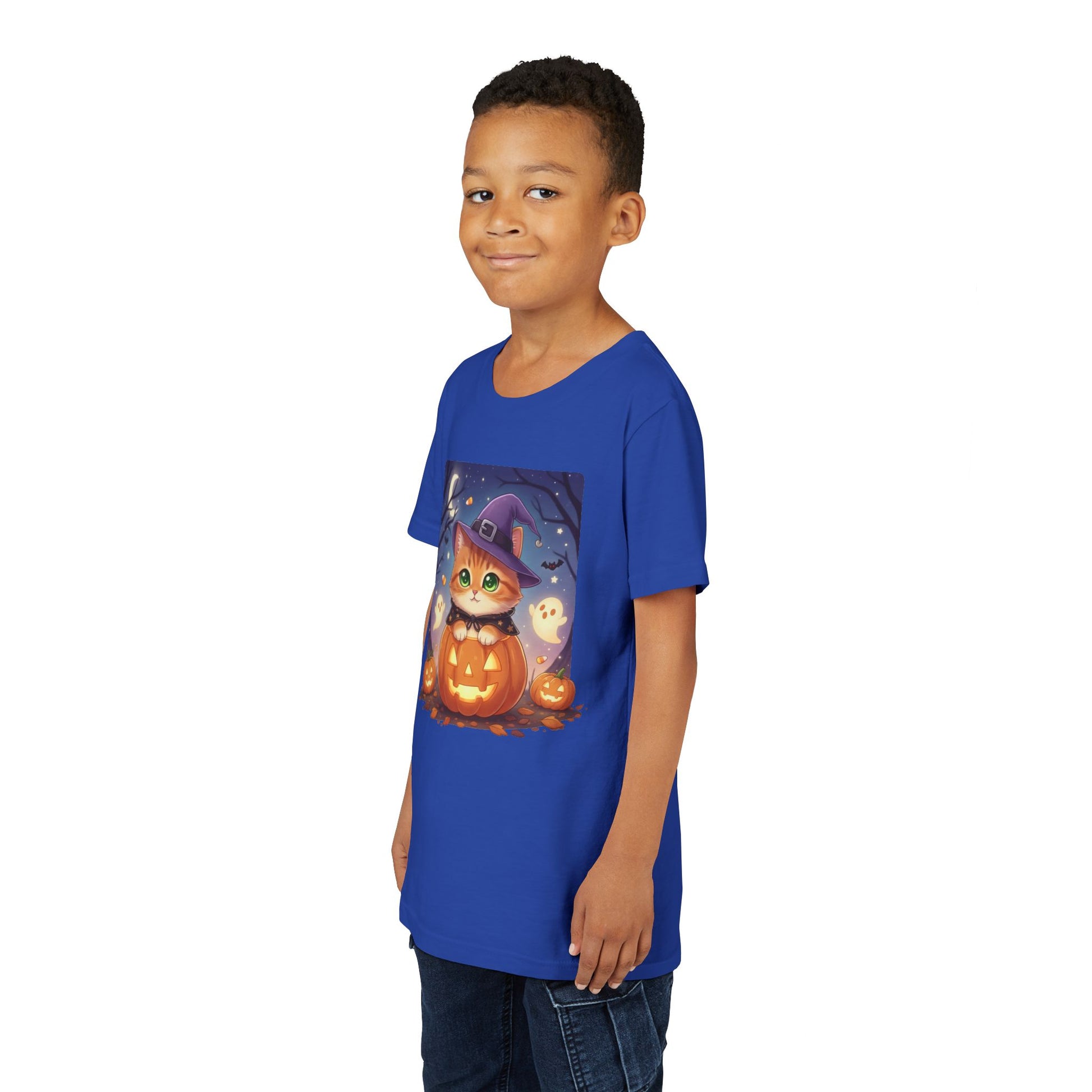 Halloween cute kitten anime style 7 Unisex Youth Tee | T-Shirt, Cute Pumpkin Shirt, Kids Halloween Outfit, Cat Lover Gift, Fun Fall Apparel